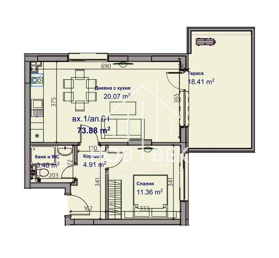 -всекидневна с кухненски бокс