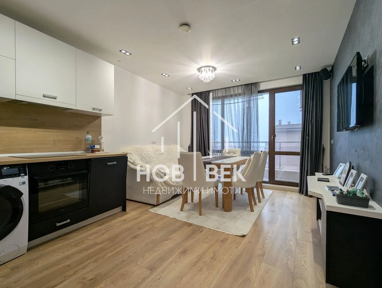 Апартаментът се предлага напълно обзаведен с висок клас мебели и изпълнен с качествени материали, подбрани с внимание към всеки детайл. Дневната зона е стилно организирана с комфортен диван, трапезарна част и модерна кухня, оборудвана с висок клас електроуреди. Спалнята е уютна и функционална, с достатъчно място за съхранение. Банята е завършена с модерни настилки и санитария от висок клас.