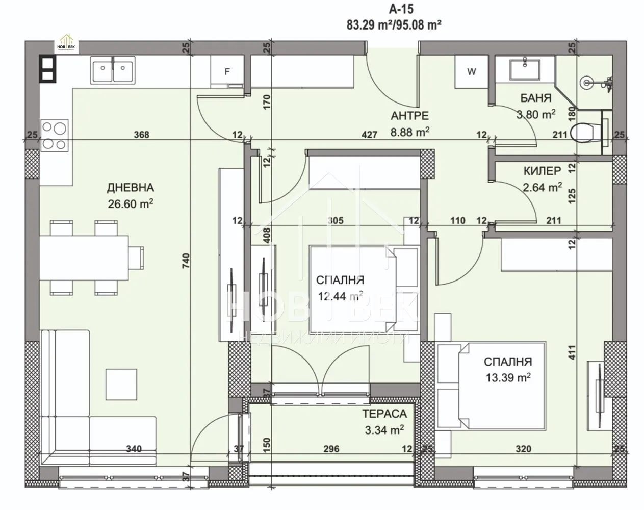 Агенция за недвижими имоти НОВ ВЕК ви представя двустаен апартамент в сграда VARNENCHIK 2 и 3 !Имотът е с чиста жилищна площ от 95.08 кв.м и се състои от: дневна с кухненски бокс, две спални , балкон и две санитарни помещения. Към жилището се предлага външно паркомясто на цена от 12 000 EUR
