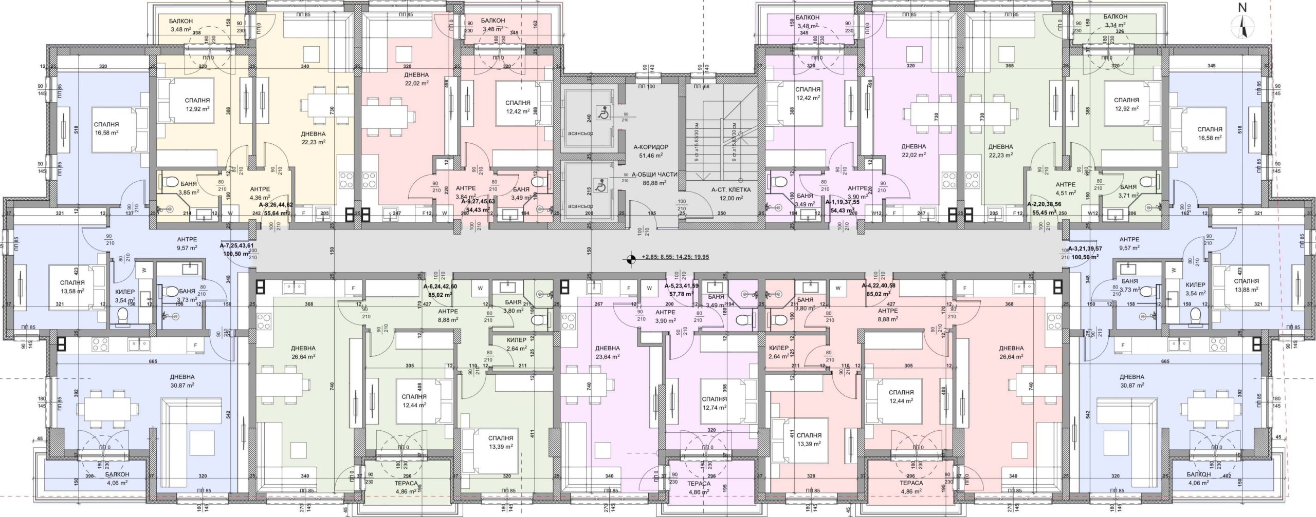 Апартамент – дневна с кухненски бокс, 2 спални, баня с тоалетна, килер, антре, балкон