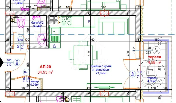 34.92 м2 Чиста площ