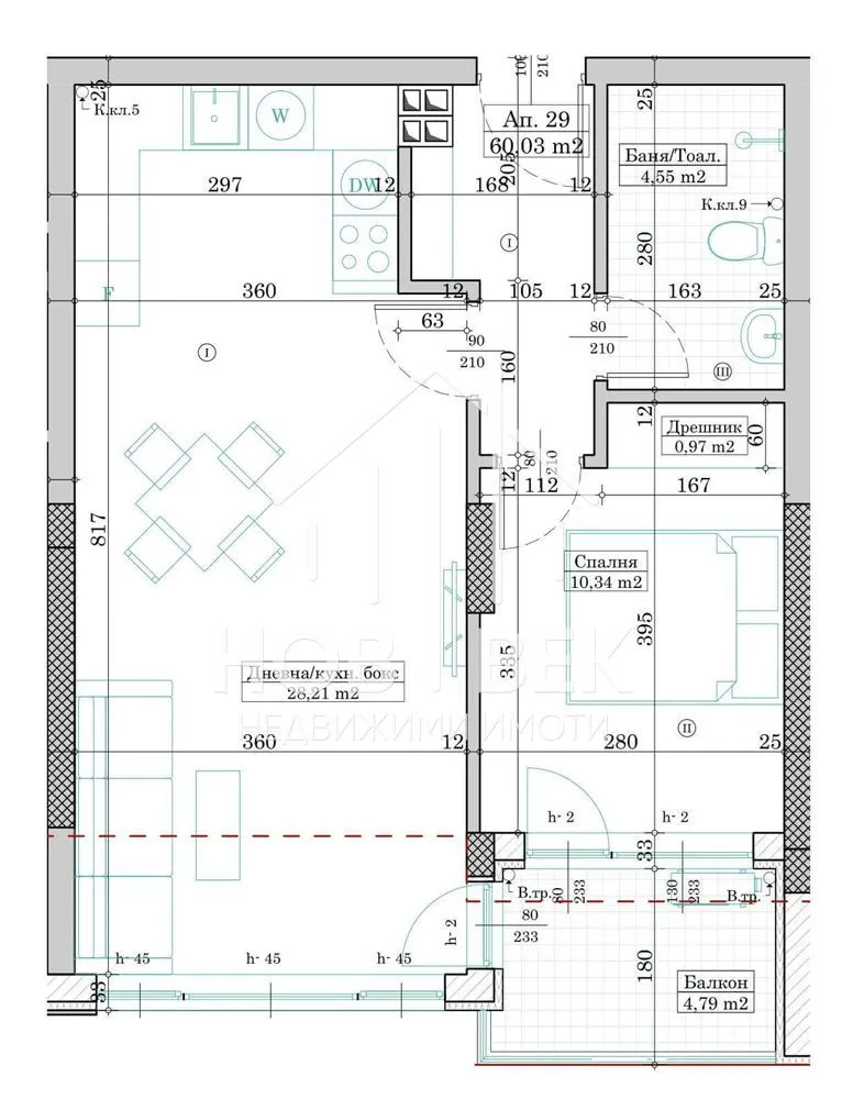 60 м2 Чиста площ