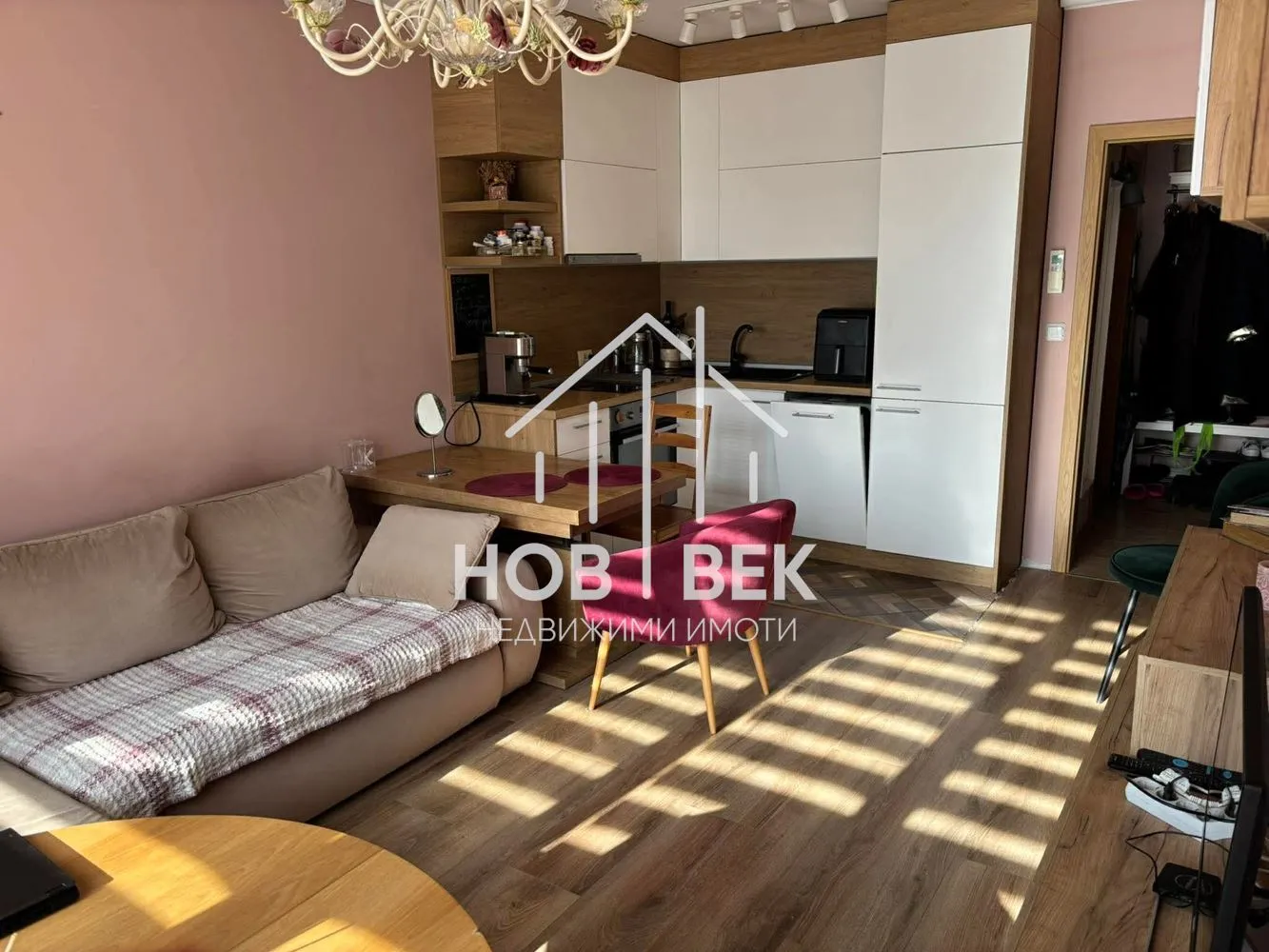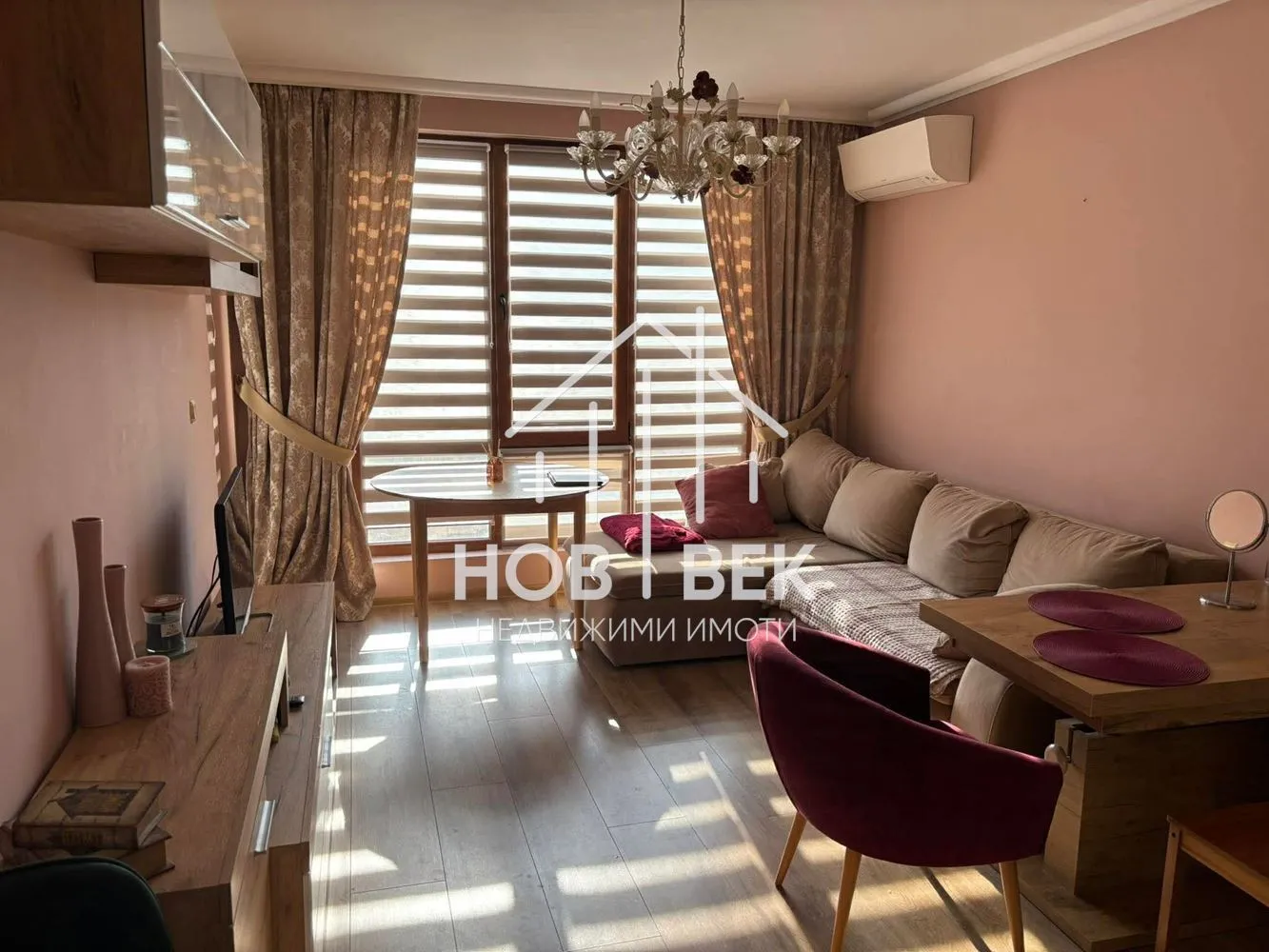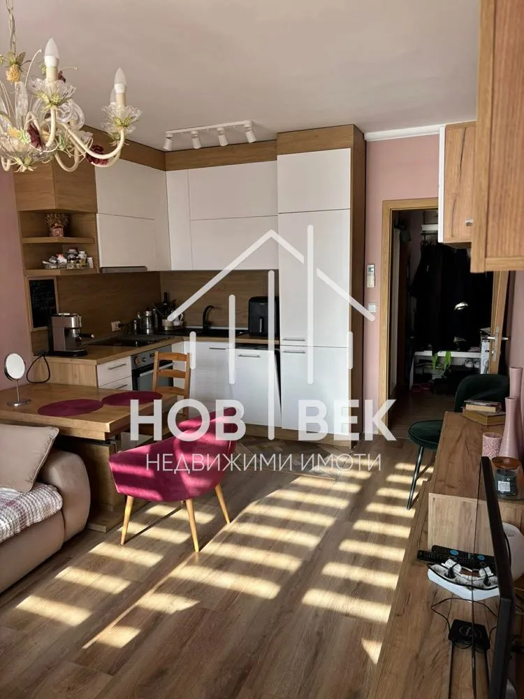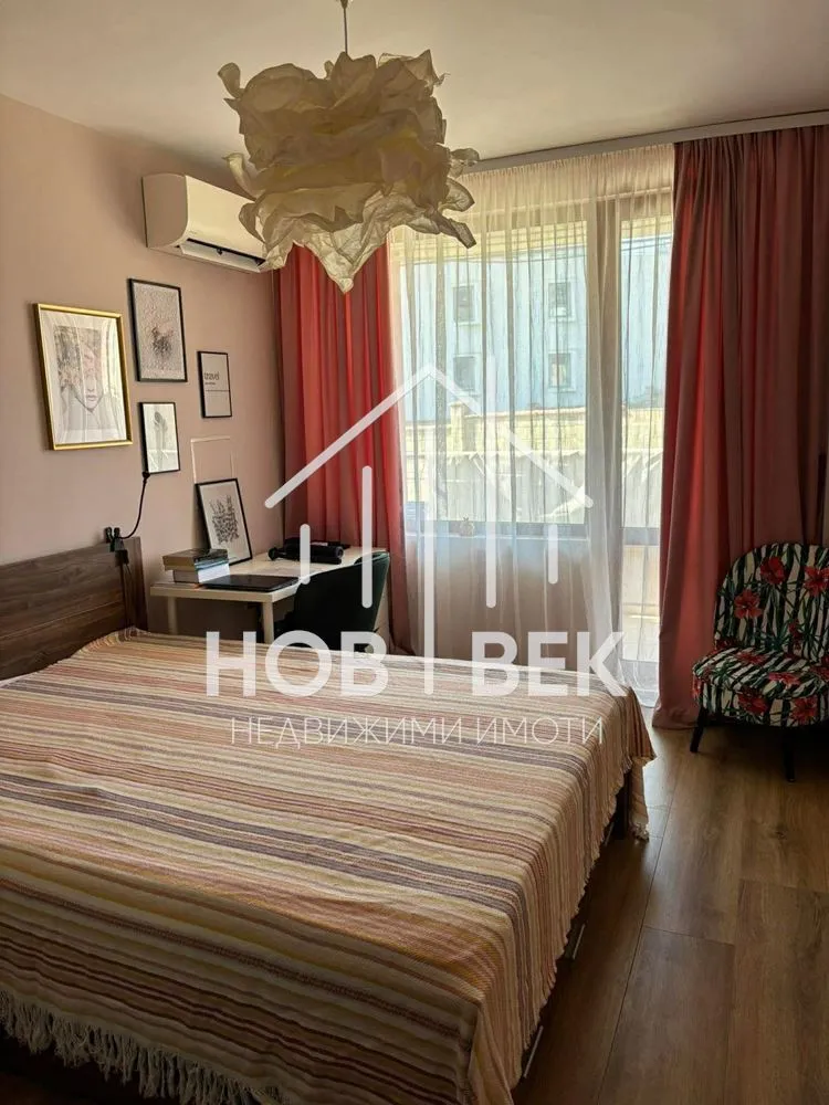 Апартаментът впечатлява с френски прозорци в дневната, които осигуряват още повече светлина и простор.