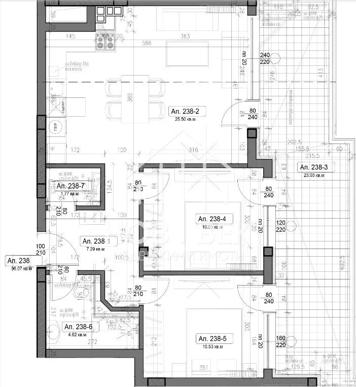 - Общо 102 апартамента, 3 ателиета и 7 други обекта.