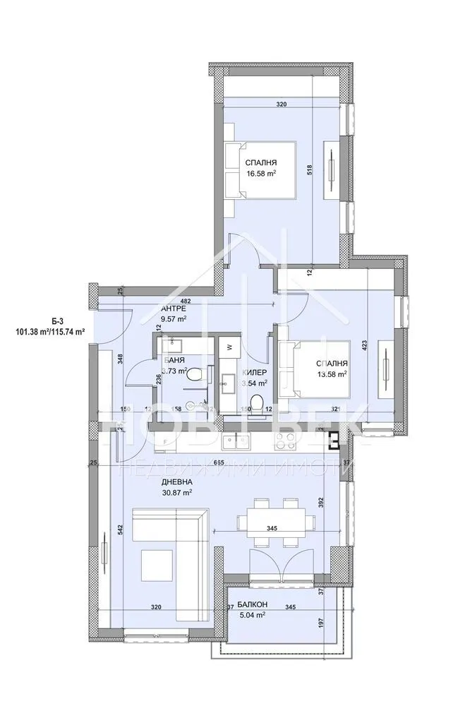 101.38 м2 Чиста площ