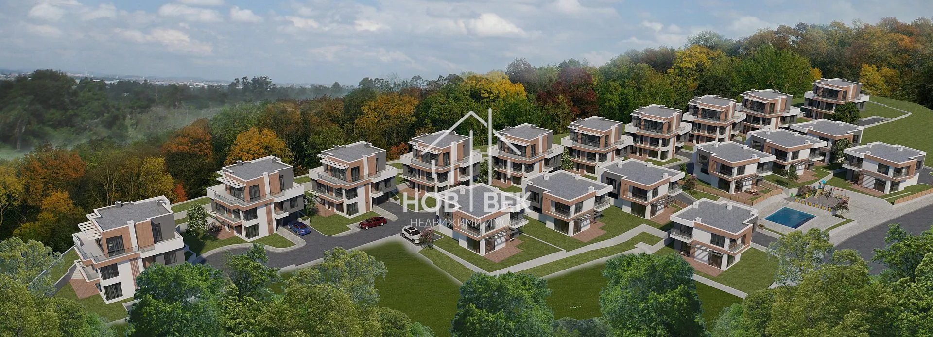 НОВ ВЕК недвижими имоти предлага на Вашето внимание двуетажна къща с РЗП 217 кв.м. и дворно място от 354,58 кв.м. в новостроящ се затворен комплекс.