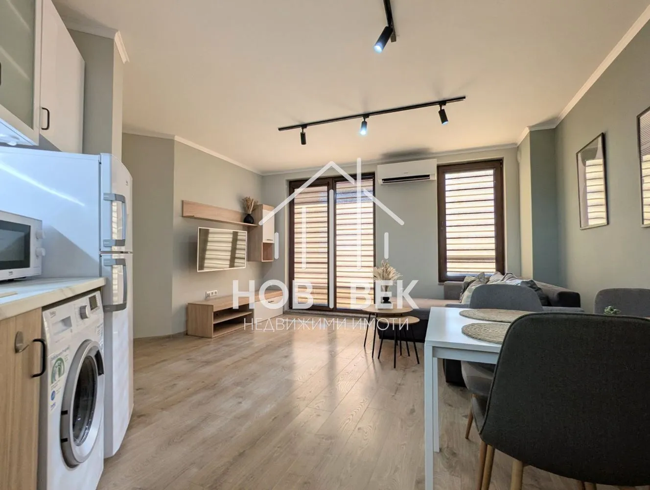НОВ ВЕК недевижими имоти предлага под наем светъл и уютен двустаен апартамент, разположен на партерен етаж в модерна сграда, отличена като Сграда на годината 2020 г.