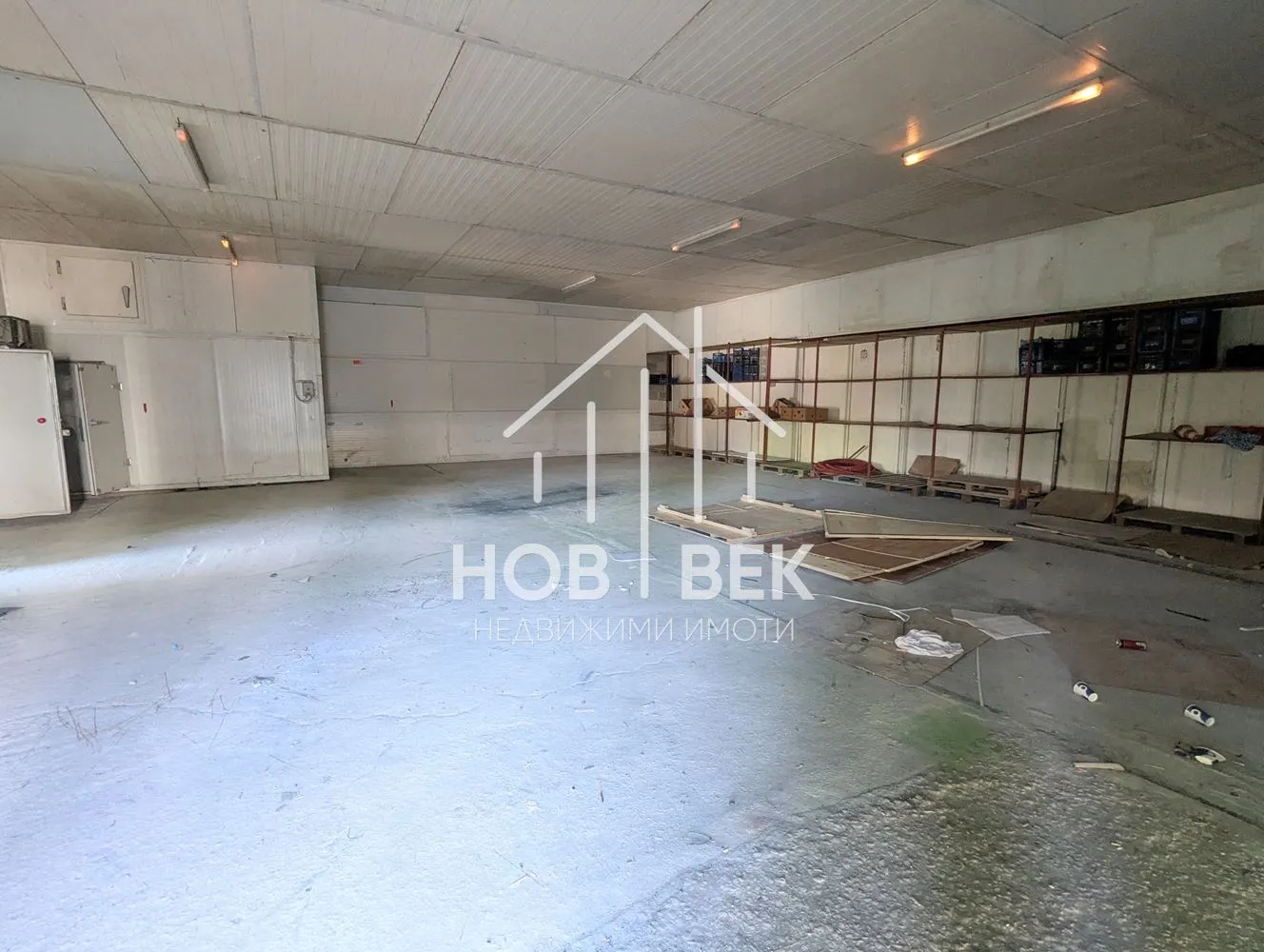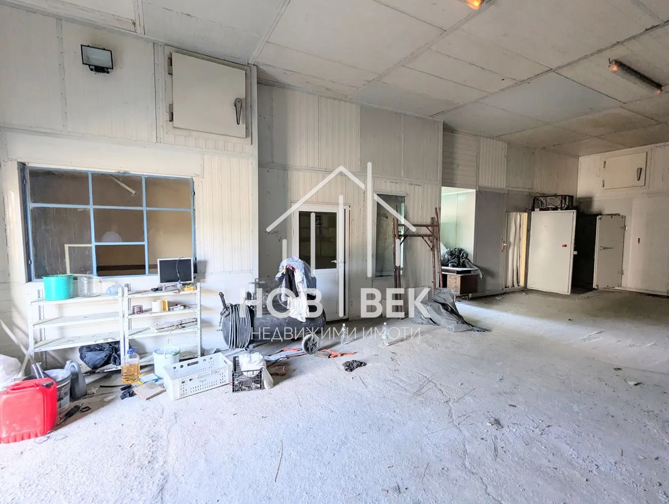 - ✅ Вход: голяма индустриална врата с възможност за влизане на бусове и камиони