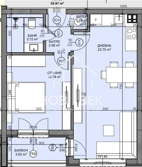 55.87 м2 Чиста площ