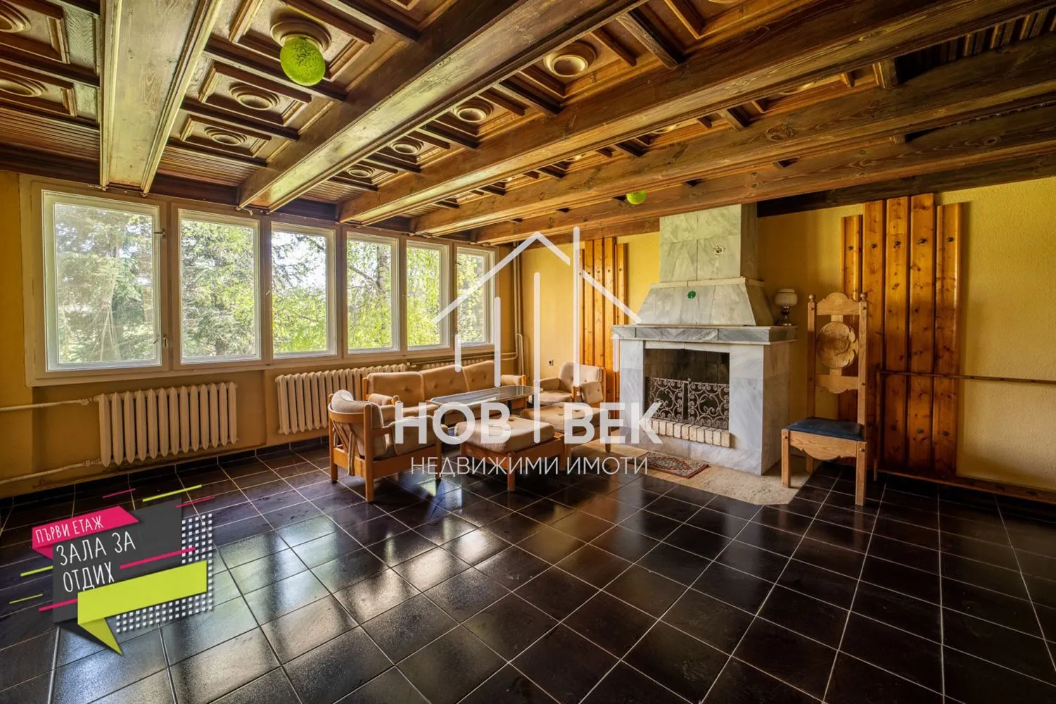 ЕКСКЛУЗИВНО!!!’Нов Дом’ недвижими имоти предлага на Вашето внимание масивна постройка, сред зелен парк с широколистна гора, чист въздух и простор. Сградата е със следното разпределение: партерно ниво, на което се намират: столова с кухненски кът, санитарно помещение, гараж, котелно помещение и склад. На първи етаж са разположени: слънчево входно антре, обособено, като рецепция, в което биха могли да бъдат посрещнати всички бъдещи посетители, коридор, от който имаме достъп до едно от най-комфортните и емблематични помещения в сградата, а именно – стаята за отдих, ресторантска част, професионално изградена кухня, две санитарни помещения и самостоятелно обособен апартамент за персонала. Вторият етаж се състои от 6 спални, всяка от които е със собствен санитарен възел и тераса, от която се разкрива разкошна горска гледка. В парцела има на разположение голям паркинг със свободна площ за паркиране. Покривът на сградата е изцяло ремонтиран, а помещенията в сградата позволяват да бъдат завършени по вкус и желание да на бъдещия собственик. Отоплението в сградата е на ток или чрез локално парно. Достъпът до имота е отличен. Обадете се сега и цитирайте този код: 22