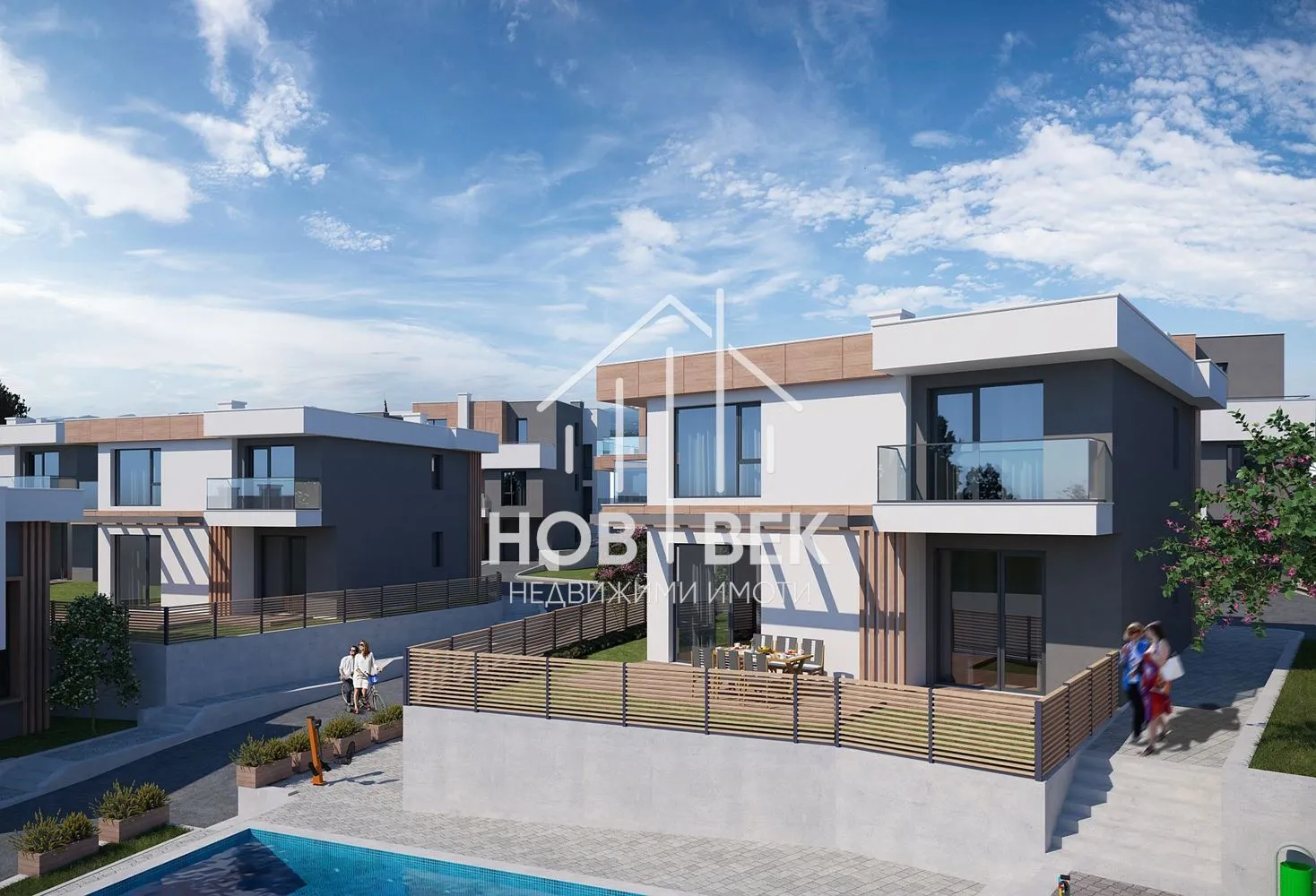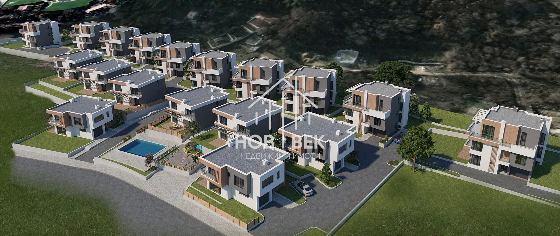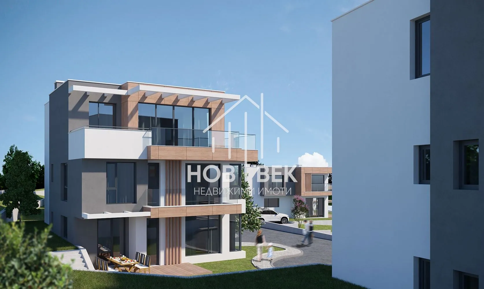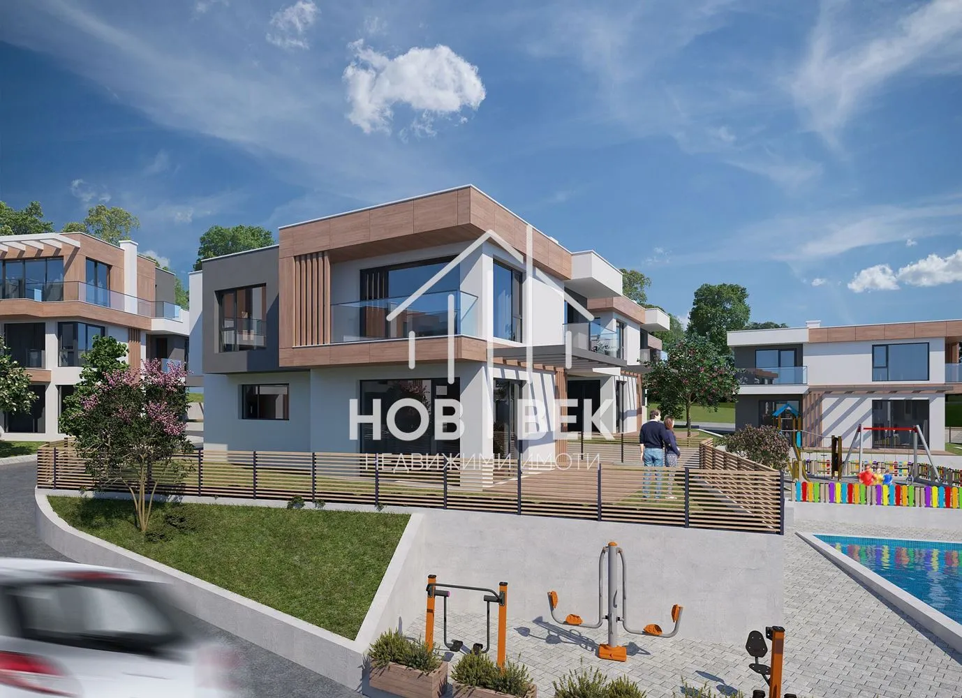 НОВ ВЕК недвижими имоти предлага на Вашето внимание двуетажна къща с РЗП 217 кв.м. и дворно място от 354,58 кв.м. в новостроящ се затворен комплекс.