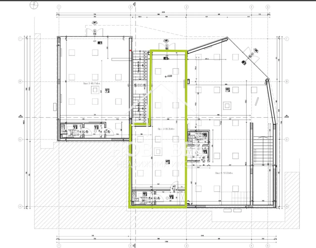 Агенция за недвижими имоти НОВ ВЕК ви представя, офис No6 с площ 124м2,намиращ се непосредствено до бизнес хотела с лице на главен булевард. Офиса е разположен на втори етаж в двуетажна офис сграда. Състои се от едно цяло помещение със собствен санитарен възел. Изключително комуникативна локация.